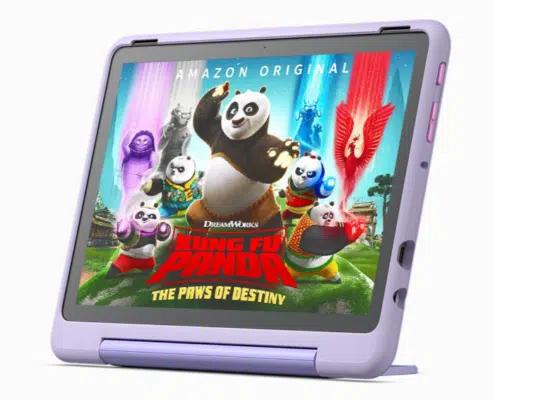 - AMAZON Fire HD 10 Kids Pro (2023), Tablet, 32 GB, 10 Zoll, Schwarz, mitgelieferte Hülle im Happy Day Design für 99,99€