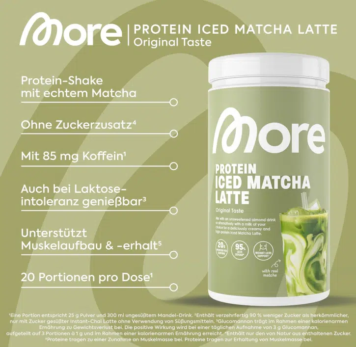 - 🍵 MORE Protein Iced Matcha Latte (600g) für 19,99€ (statt 26€)
