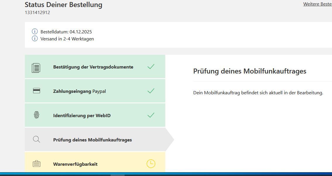 Meine Bestellung ist vorhin mit positiver Webidentifikation bestätigt worden. 🤗