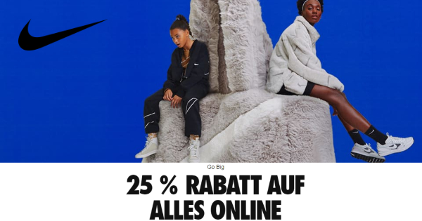 Zur Black Week haut Nike einen schönen 25% Rabattcode raus, den ihr für (fast) alle Artikel nutzen könnt. Mit dem Gutscheincode GOBIG224 spart ihr also 25% Rabatt auf Schuhe, Hoodies, Trainingsanzüge und vieles mehr.