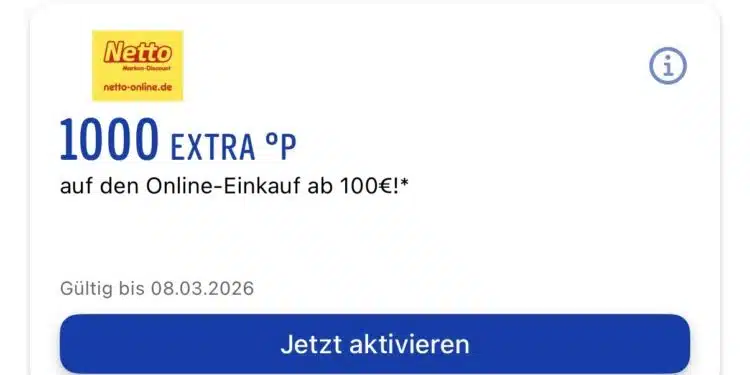 *Glückwunsch, Sie erhalten GRATIS einen 30 € Filialgutschein zu Ihrer Bestellung! Dieser wird Ihnen 4 Wochen nach Warenlieferung automatisch per Mail zugeschickt und ist ohne Mindesteinkaufswert 1 Monate ab Ausstellungsdatum in allen Netto-Filialen einlösbar. Pro Person maximal ein Filial-Gutschein erhältlich. Sollten Sie 4 Wochen nach Warenlieferung den Gutschein noch nicht erhalten haben kontaktieren Sie gerne unseren Kundenservice.