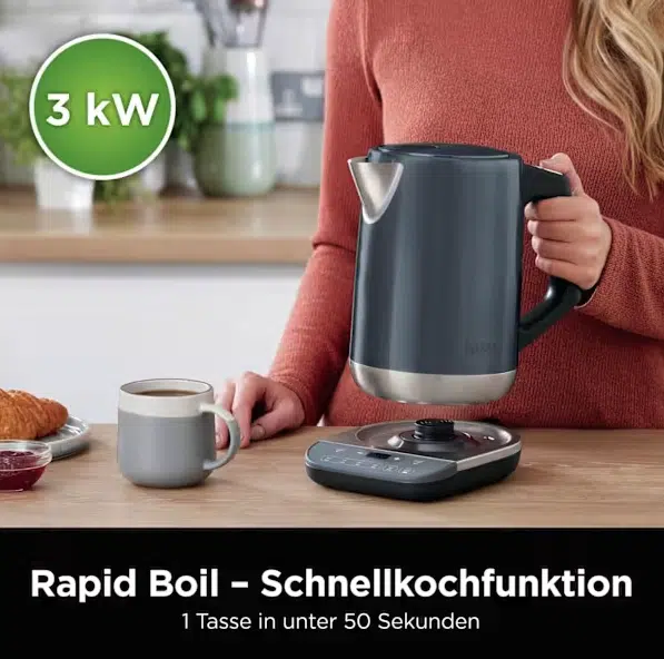 Warum solltet ihr euch mit lauwarmem oder verbranntem Tee zufriedenstellen, wenn ihr volle Kontrolle haben könnt? Der Ninja Wasserkocher Cyberspace ist nicht nur ein optisches Highlight in eurer Küche, sondern sorgt dafür, dass jeder Aufguss perfekt gelingt.