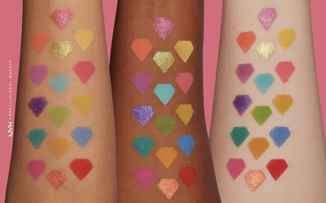 Mit dieser Palette bekommt ihr 16 tolle Farben, die euer Makeup auf jeden Fall aufwerten. Die Farben sind bunt und teilweise glitzernd und versprechen einen ganztĂ€gigen Halt, ohne dass ihr zwischendurch nachbessern mĂŒsst. Auf dem Foto erkennt ihr, wie die Farben auf unterschiedlichen Hauttönen zur Geltung kommen!