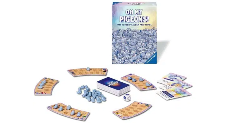 Oh My Pigeons! ist ein schnelles, leicht chaotisches Partyspiel von Ravensburger, bei dem sich alles um kleine Plastik-Tauben und eine gehörige Portion Schadenfreude dreht.