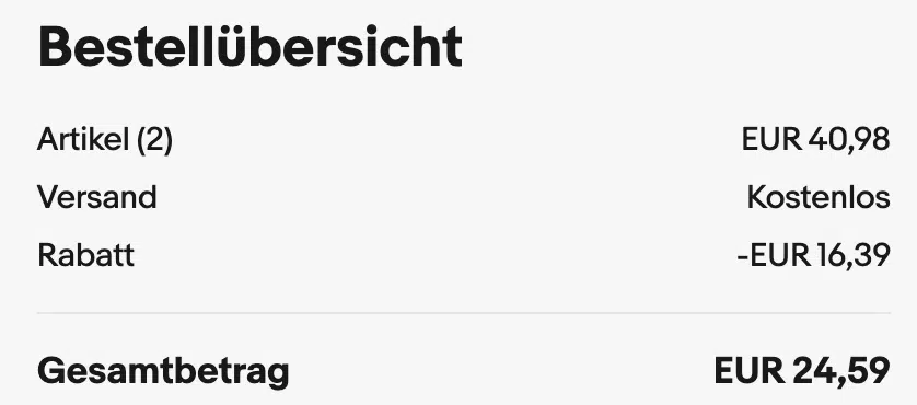 Um den Rabatt zu erhalten, müsst ihr lediglich zwei Aktionsartikel in den Warenkorb legen. An der Kasse gebt ihr dann den Code ein. Hier sind die Details im Überblick: