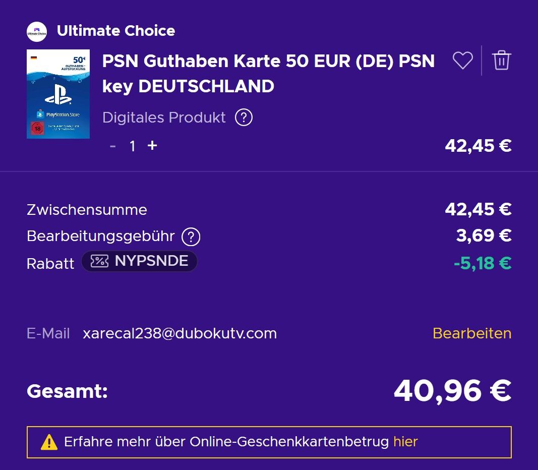 Alternativ den hier nicht vergessen https://www.idealo.de/preisvergleich/OffersOfProduct/6836475_-playstation-store-guthaben-aufstockung-100-euro-deutschland-sony.html#pricechart wenn das Angebot aktuell wieder weg ist 😉