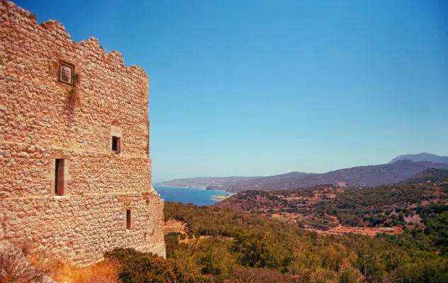 Die Westküste ist rauer und ursprünglicher. Besucht die Burg von Monolithos, die spektakulär auf einem Felsen klebt, und entspannt am Apolakia Strand. Der Sonnenuntergang hier ist der perfekte Abschluss eurer Reise.