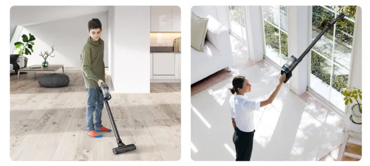 Dank zwei Akkus könnt ihr auch größere Wohnungen problemlos reinigen. Einer lädt, während ihr mit dem anderen weitersaugt. Und mit dem Spray Spinning Sweeper geht ihr nach dem Saugen direkt ans feuchte Wischen – ideal für Fliesen, Laminat oder Parkett.