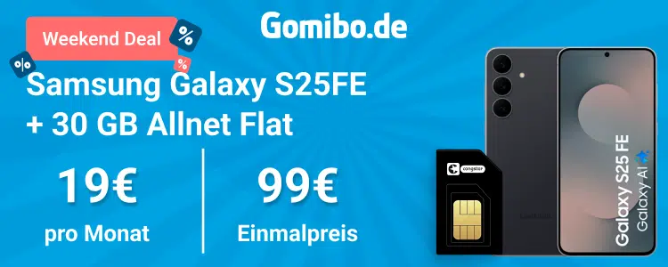 Ihr sucht das Samsung Galaxy S25 FE und wollt dabei nicht direkt den vollen Idealo-Preis auf den Tisch legen? Warum bei Idealo über 470€ bezahlen, wenn ihr das Smartphone mit einer 30GB Allnet Flat im besten Netz rechnerisch fast geschenkt bekommt? Bei Gomibo gibt es gerade ein Bundle, das den Einzelkauf alt aussehen lässt – perfekt für alle, die Qualität von Samsung mit der Flexibilität von congstar kombinieren wollen.