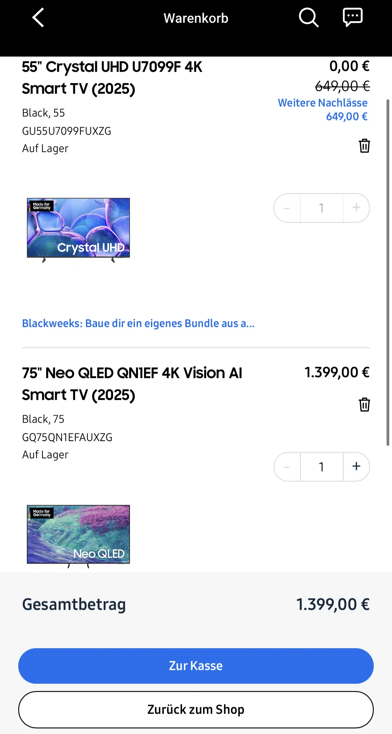 - 📺 Samsung 75 Zoll 4K TV GQ-QN1EF mit Vision AI für 1399€