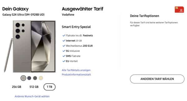Ich krieg hier bloß ne gammelige S24 und ein Smart Entry Spezial Vodafone Tarif.
