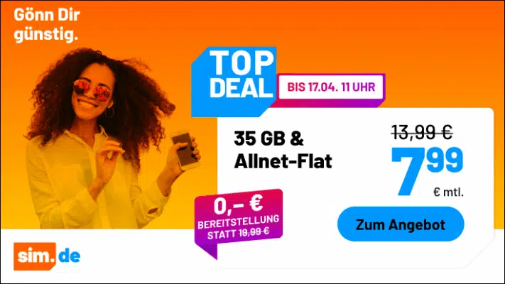 TOP 5G/LTE Handy Allnets 📲 35GB für 7,99€ & weitere Tarife ⏰ nur für kurze Zeit (sim.de im 1&1-Netz)