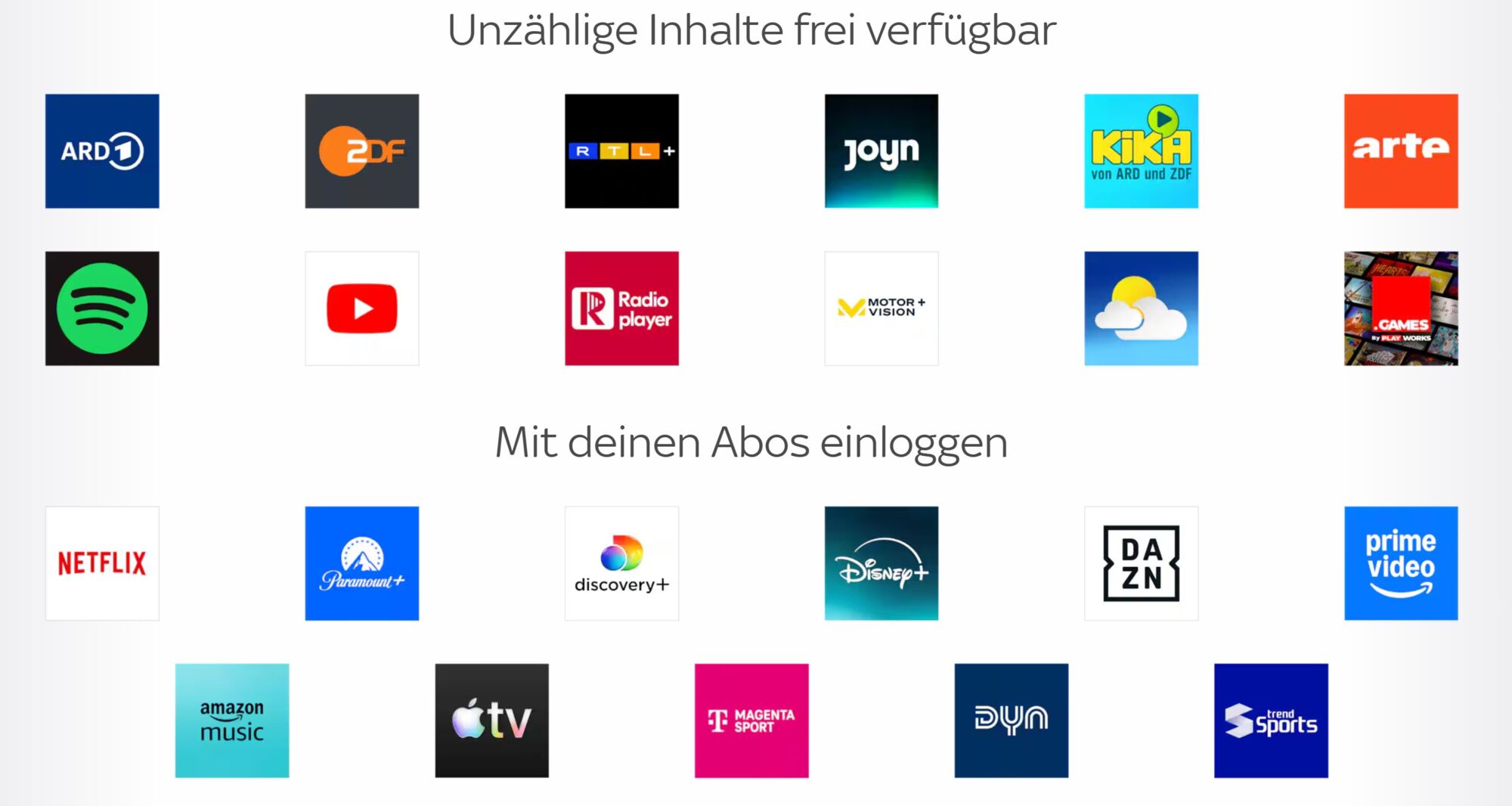 TOP 🚀 Sky TV 1 Jahr GRATIS: Free-TV in HD geschenkt + Sky Stream Box komplett kostenlos (Smart TV mit Apps für Netflix, Disney+, RTL+, YouTube & Co.)