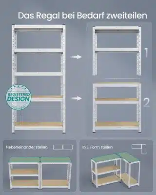 - Zweiteilbar: Dieses Regal kann in 2 kleine Regale unterteilt werden