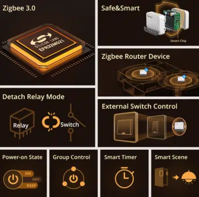 - Kompatibilität: Home Assistant (ZHA/Zigbee2MQTT), Sonoff Hubs, Echo (mit Zigbee)
