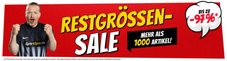 SportSpar feiert wieder den Restgrößen-Sale – schaut mal rein! Alle Preise sind bereits reduziert. Die Aktion läuft nur bis zum 26. Februar!