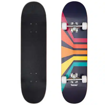 Die Skateboards von MUWO gibt es in verschiedenen coolen Designs. Alle Decks bestehen aus Ahorn und sind auf der Unterseite mit einem der Designs bedruckt. Die Form der Boards ist „concave„, also längsseitig gewölbt, und trägt somit zur Verbesserung der Lenkung und des Flip-Verhaltens bei. Die Boards rollen am besten mit einem Körpergewicht von 20-100 kg. Und noch etwas: die Decks sind außerdem mit einem bereits aufgeklebten Griptape bestückt, womit sich das Board also nicht nur gut für erfahrene Skater macht, sondern auch für Skate-Anfänger.