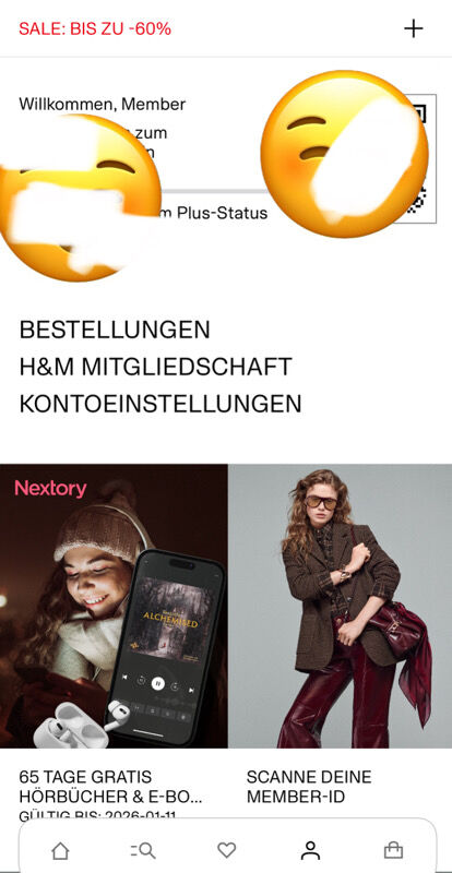 Neues Konto innerhalb der Familie angelegt bei h&m, da kommt nix…