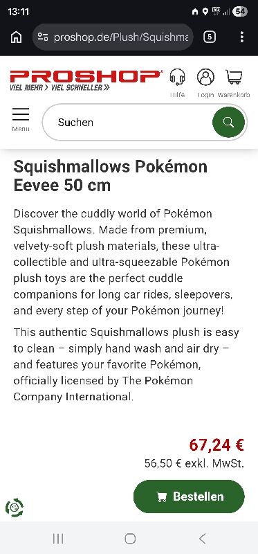 Leute, wie süß ist dieses Evoli hier denn? Und wie weich und flauschig? 🥹 Bei Proshop bekommt ihr aktuell das 50cm große Plüsch-Pokémon von Squishmallows für gerade mal 34,99€ inkl. Versand.