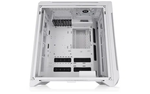 Das CTE C700 Air ist für E-ATX (sowie ATX, mATX, Mini-ITX) ausgelegt und richtet sich klar an große Builds: 7 Erweiterungsslots, üppige Kühlflächen und reichlich Spielraum für Kabelmanagement und Custom-Loops. In Thermaltakes eigenem Thermik-Report wurde das Case mit Intel Core i9-13900K und einer RTX 4090 vermessen – sprich: selbst absolute High-End-Hardware passt und wird effizient abgeführt.