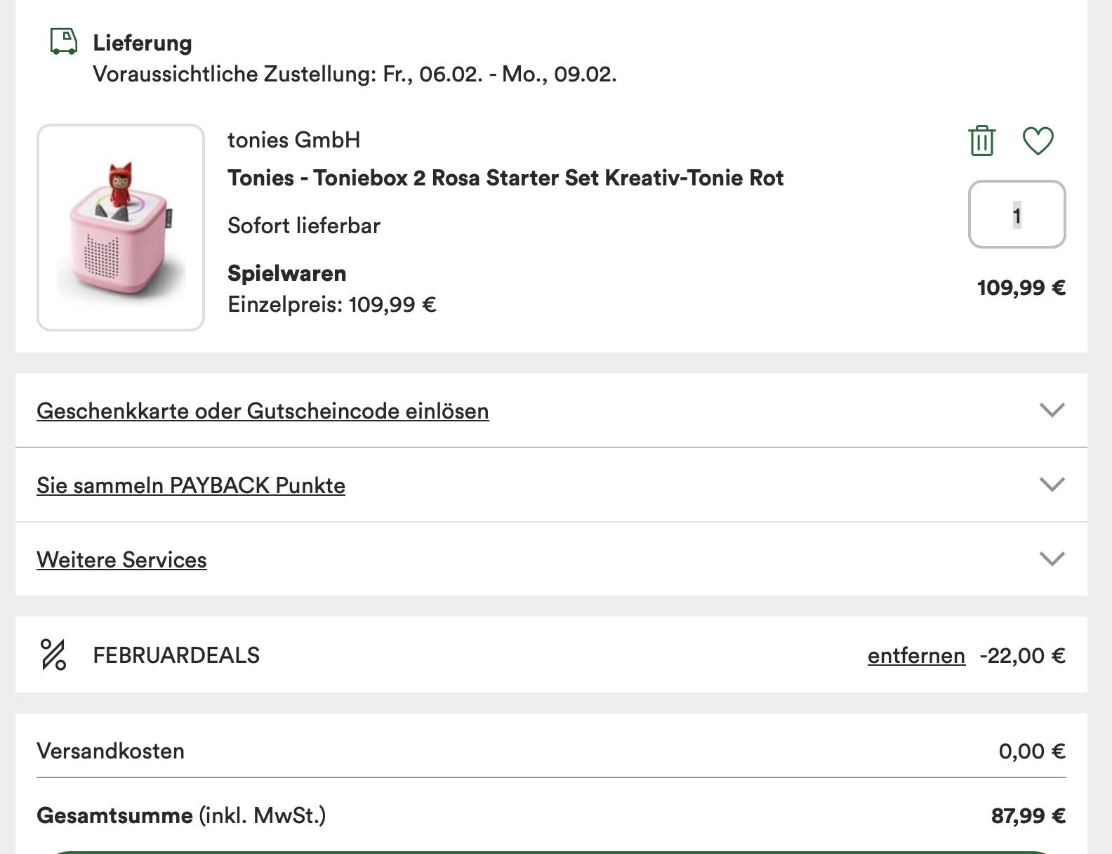 Hier ein Screenshot vom Warenkorb.