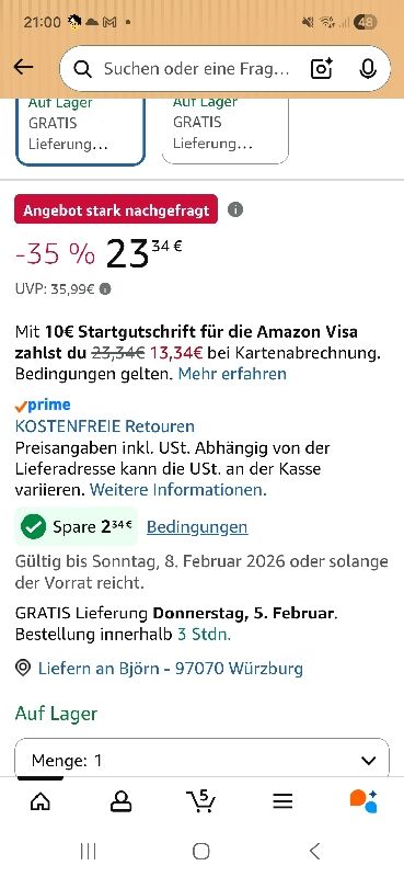 - Preisvergleich: 34€, Ersparnis: 13€