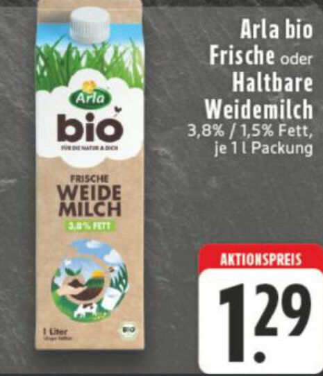 Einfach, schnell und risikofrei, so könnt ihr Arla Bio Weidemilch, egal ob frisch oder haltbar in den Fettstufen 1,5% und 3,8% günstig ausprobieren.