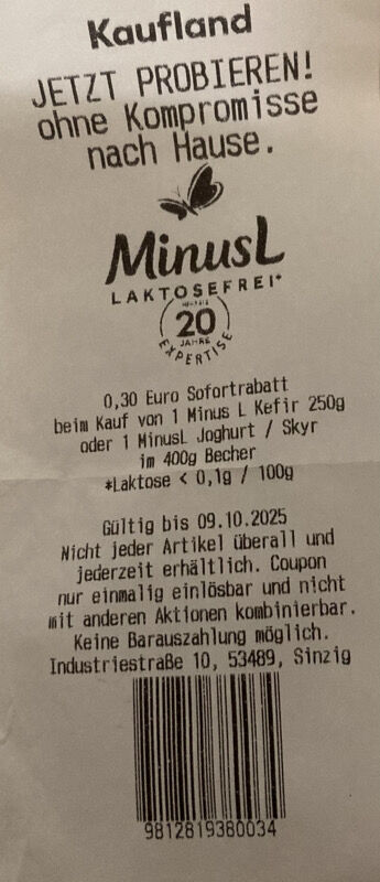Bei Scondoo erhaltet ihr 0,50€ Cashback auf den Kauf von MinusL Kefir 250g. Ihr könnt den Deal 3x einlösen. WICHTIG: Bitte das Produkt zusammen mit eurem Kassenbon fotografieren und hochladen!!! Der Aktionszeitraum ist vom 31.08. bis 31.10.2025. Die Aktion ist nicht mit anderen Coupons kombinierbar. Nur solange der Vorrat reicht. Wer scondoo nicht kennt: Ihr habt die Möglichkeit den Kassenzettel entweder über die scondoo.de Webseite oder über die App hochzuladen. In beiden Fällen müsst ihr euch einen Account anlegen. Eine bestimmte Summe braucht ihr nicht ansammeln. Ihr könnt das Guthaben direkt nach positiver Prüfung durch scondoo auf euer Konto überweisen lassen.