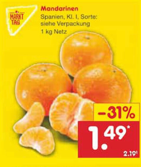 Bis incl. nächsten Montag kann man über Smhaggle App 0,50€ auf 1 kg Mandarinen als Guthaben beim Hochladen des Kassenzettels am Einkaufstag erhalten.