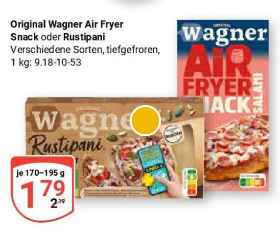 Über Scondoo kann man sich einen Rabattgutschein für 0,50€ Ermäßigung beim Kauf von Wagner Airfryer Snack (sowas wie Rustipani).