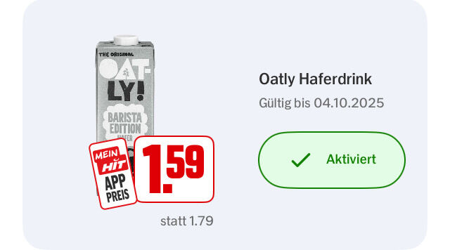 noch bis 11.10. kombinierbar mit 20% Oatly Rabatt in der DM App (zumindest bei mir)