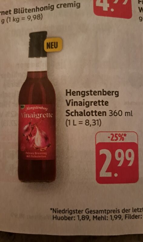 Und schon wieder könnt ihr durch den Guru könnt ihr beim Kauf von Hengstenberg Vinaigrette sparen.👍Diesmal aber nur 1,00 €.