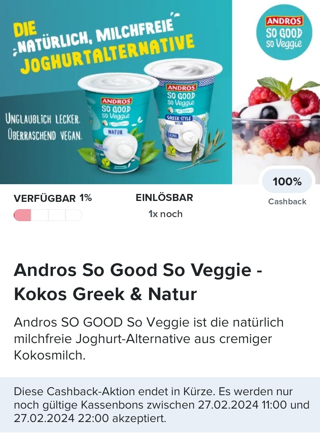 ABGELAUFEN 1+1 Aktion bei Marktguru auf Andros Kokos Greek oder Natur
