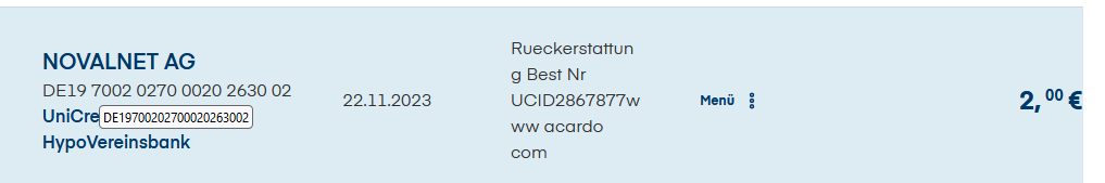 Erstattung erfolgt per Überweisung.