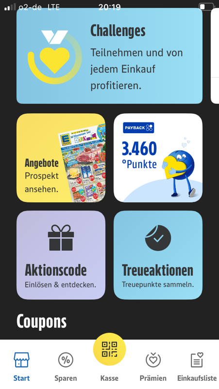 Wer in der Edeka App nichts sieht: bitte die App aktualisieren – Start sieht dann so aus, man klickt dann auf Chellenges