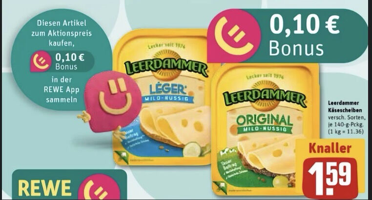 50 % Cashback auf Leerdammer® Extra Mild nur bei Rewe über Scondoo