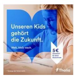 Thalia belohnt deutschlandweit bis zum 30. September 2024 gute Leistungen im Fach Deutsch. Man kann einen 5€ Gutschein bekommen.