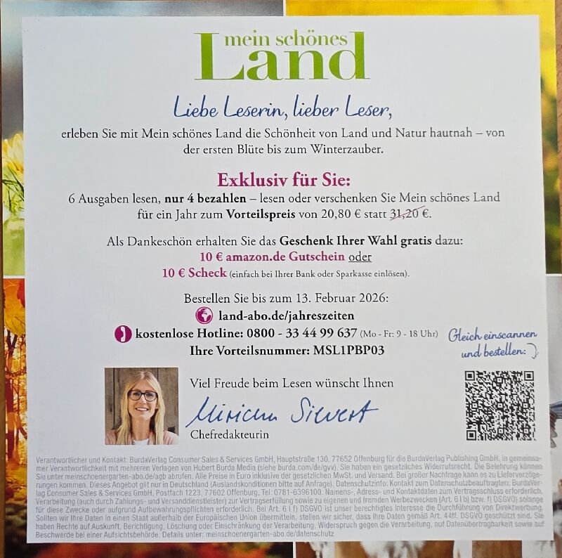 6 Ausgaben mein schönes Land lesen, nur 4 bezahlen und zusätzlich 10 Euro erhalten