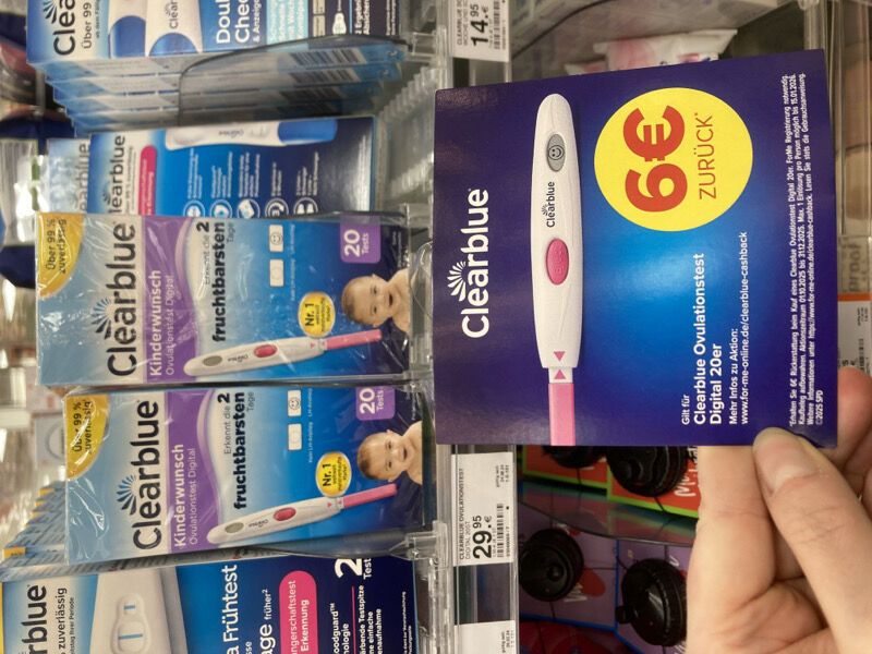 - Ihr könnt das Cashback nur auf den Clearblue Ovulationstest Digital 20er (und nur für diesen) bekommen.