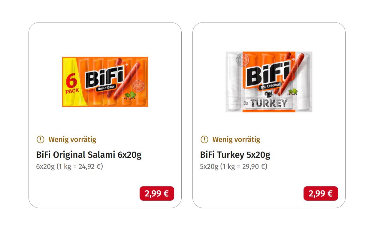 Wer nur eine einzelne Chicken XXL Bifi kaufen möchte, kann hier vermutlich kombinieren und noch 1⏠bekommen.