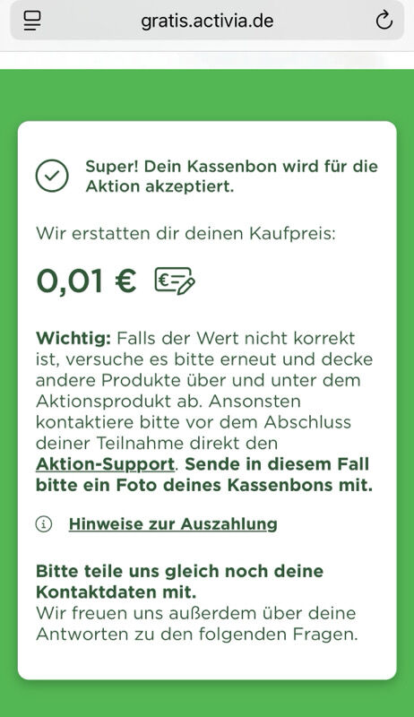 Teilnahme funktioniert bei mir ĂŒberhaupt nicht, denn die KI, die den Kassenbon prĂŒft, erkennt den Kaufpreis nicht. Habe mehrere Versuche mit neuen Fotos gemacht.