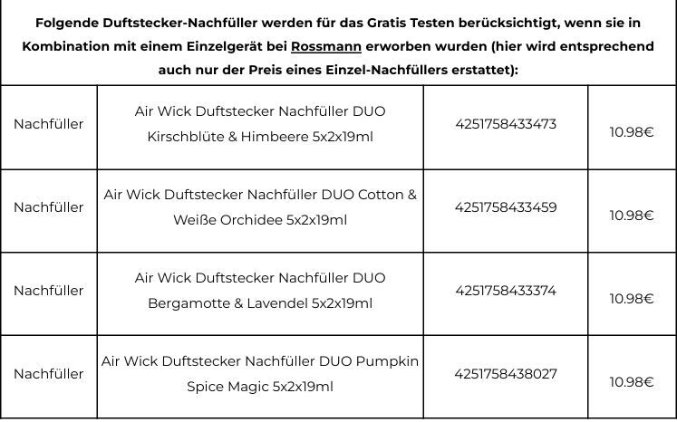 Ihr wĂŒrdet gern mal Airwick gratis testen? Bald habt ihr die Gelegenheit dazu! đ Ab 02.02.2026 könnt ihr ausgewĂ€hlte Air-Wick-Produkte ganz ohne Risiko ausprobieren. Im Rahmen der âAir Wick Gratis testenâ-Aktion bekommt ihr den Kaufpreis vollstĂ€ndig zurĂŒckerstattet.