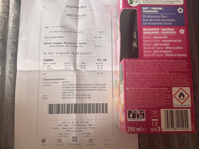 @Sara302025: „Kaufen Sie ein Air Wick Starter-Set oder ein Air Wick Einzelgerät in Kombination mit einem entsprechenden Air Wick Nachfüller während des Aktionszeitraums (15.09.2025 – 16.11.2025) bei einem der registrierten Einzelhändler in Deutschland oder Österreich. “ – Das ist der erste Satz der TNB. Also: Bei jedem registrierten Einzelhändler – dm, Rossmann, Müller, Tante Emma usw.