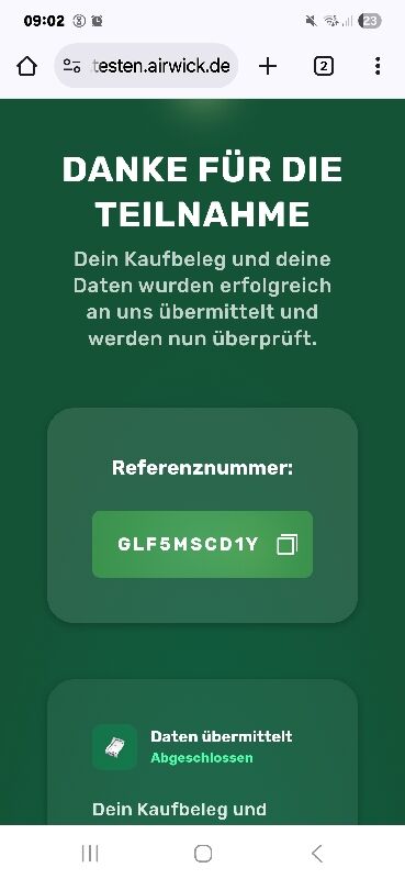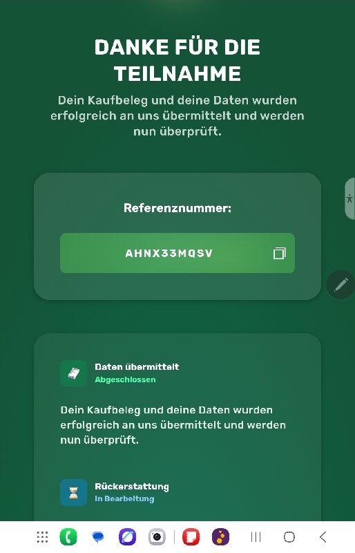 Am 17.09.2025 teilgenommen und vor 5 Minuten CashBack erhalten (Konto meiner Eltern)