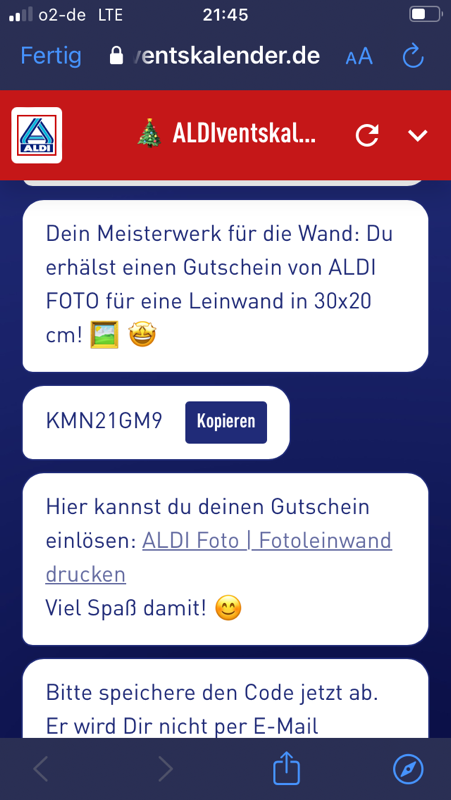Zu verschenken – einlösbar unter https://www.aldifotos.de/wandbilder/foto-leinwand.jsf