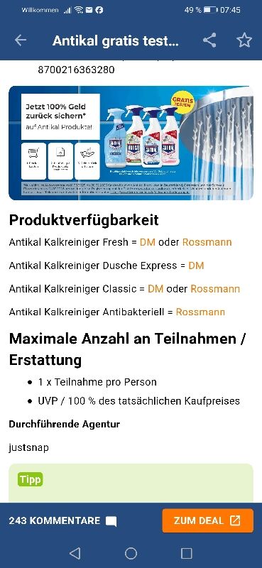 @bd52005: immerhin dĂźrfen wir ja eins gratis probieren. kaufe sonst ja auch eher die billigen bad reiniger von kaufland
