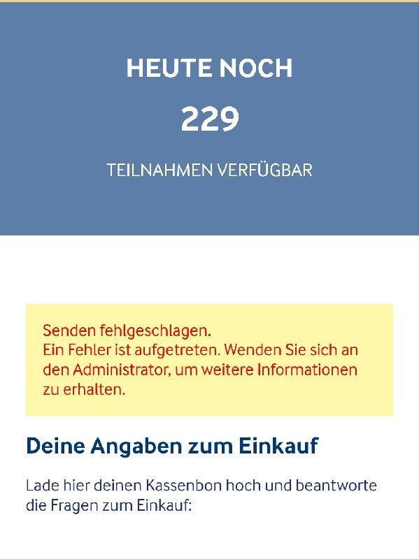 Es scheint hier oft zu Fehlern bei der Teilnahme zu kommen und die Aktion scheint deutlich Ăźberlaufen zu sein.