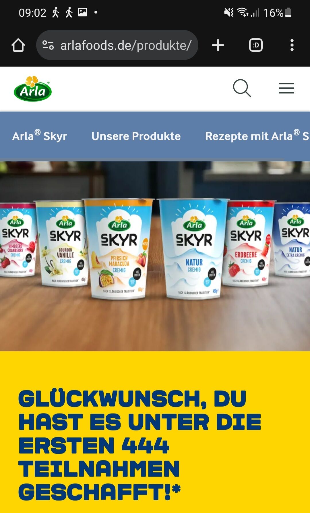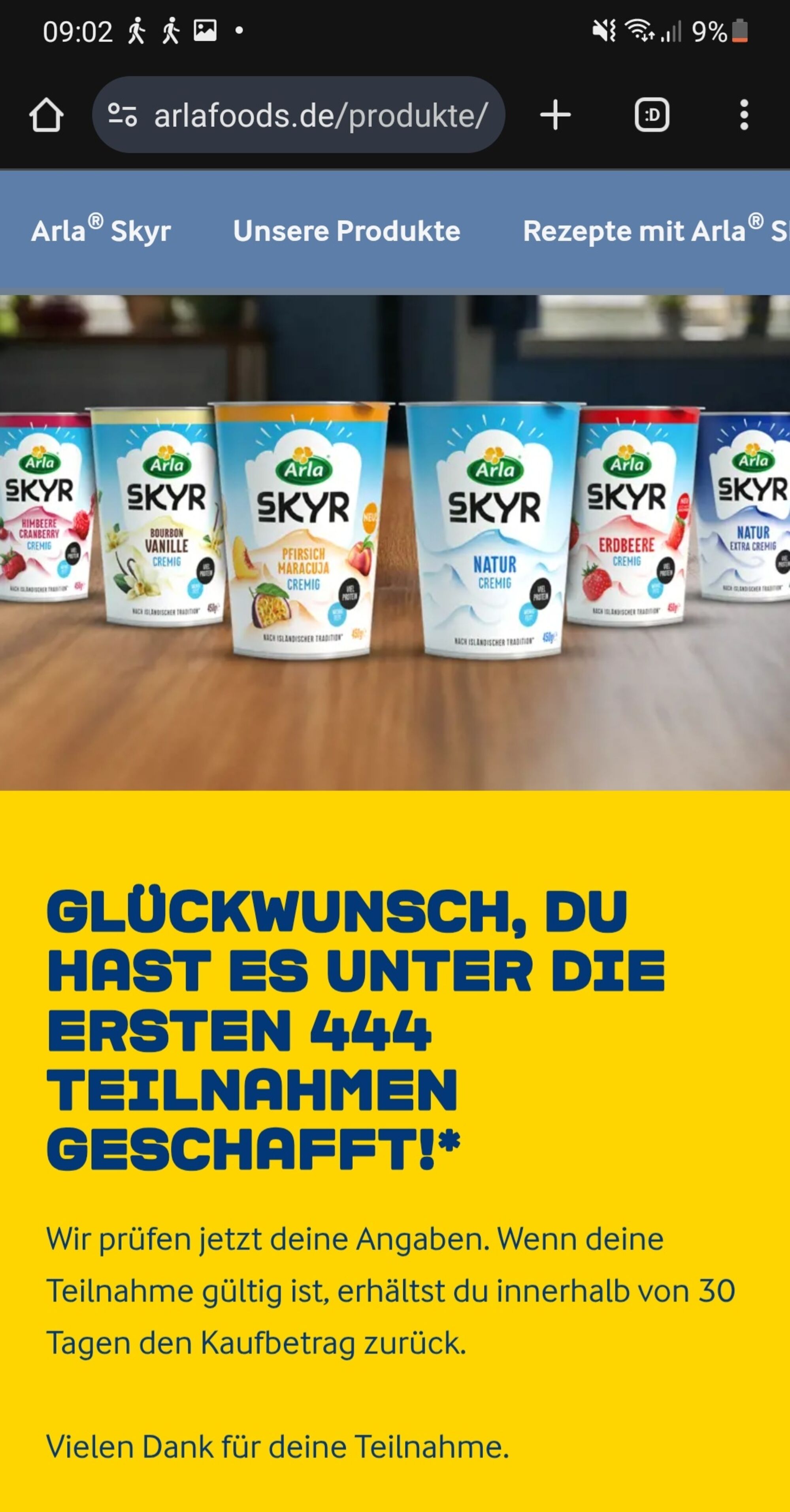 vielen Dank fĂźr deine Teilnahme an unserer âArlaÂŽ Skyr â Gratis Testen“ Aktion!