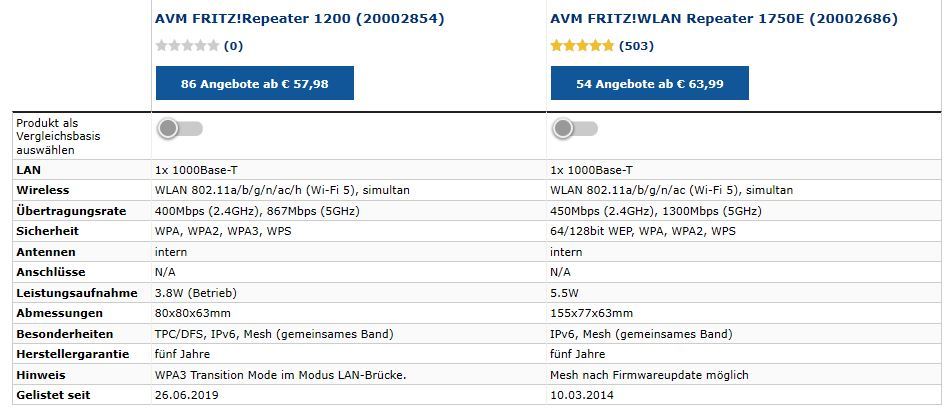 Eigentlich ist der 1750E besser, da er eine höhere Geschwindigkeit unterstützt. Aber der 1200 unterstützt bereits WPS 3.