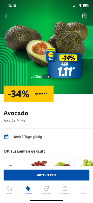 Bei Netto gibt es die chiquita Avocado für 1 Euro und bei Lidl 700gramm für 2,49 Euro